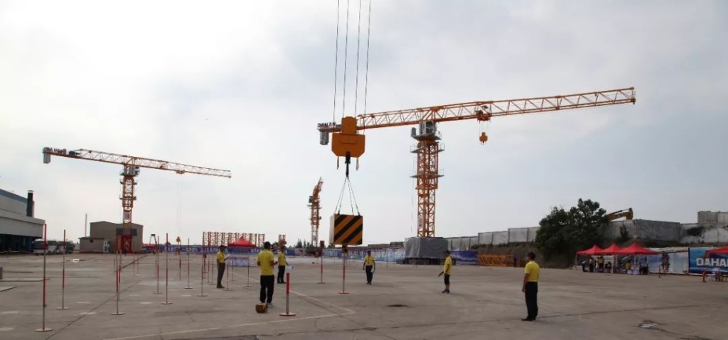 公司董事長康與宙在大賽開幕式上致辭,康總說為實現(xiàn)大漢股份高質(zhì)量發(fā)展、可持續(xù)發(fā)展,公司投入巨資引進(jìn)高精度智能化生產(chǎn)線和智能化專業(yè)設(shè)備,打造智能化工廠。此次選拔賽使用的四臺7025大型塔機系列產(chǎn)品,整體設(shè)計吸收借鑒歐洲先進(jìn)的平頭塔機設(shè)計理念,塔機所有結(jié)構(gòu)件均使用高強度結(jié)構(gòu)鋼,吊臂自重輕而強度高,能充分發(fā)揮平頭設(shè)計的優(yōu)勢,三大機構(gòu)全變頻控制,特別適應(yīng)一、二線城市裝配式建筑吊裝各種工況條件,已成為塔機市場需求的主流產(chǎn)品。