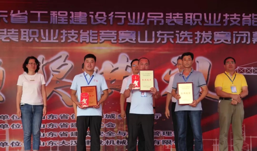 經(jīng)過激烈的角逐,“大漢杯”山東省工程建設(shè)行業(yè)吊裝職業(yè)技能決賽暨2019全國競賽山東選拔賽圓滿閉幕。16支參賽隊75名專業(yè)選手通過理論考試和實操比武,山東濟南市代表隊、青島市代表隊、日照市代表隊分別摘得技能競賽團體獎前三強。山東大漢建設(shè)機械股份有限公司獲得山東省建設(shè)工會、山東省建筑安全與設(shè)備管理協(xié)會頒發(fā)的“突出貢獻(xiàn)獎”。來自濟南市代表隊的李寶順從參賽的眾多塔機頂尖高手脫穎而出,憑借精湛的技術(shù)和穩(wěn)定的臨場發(fā)揮,摘得本此吊裝大賽第一名的桂冠,并獲得由山東省總工會授予的“山東省五一勞動獎?wù)隆?;濟南市代表隊的劉順卿、董波,日照市代表隊的李高華分別獲得二等獎;青島市代表隊的馬云勝等15名選手獲得三等獎。