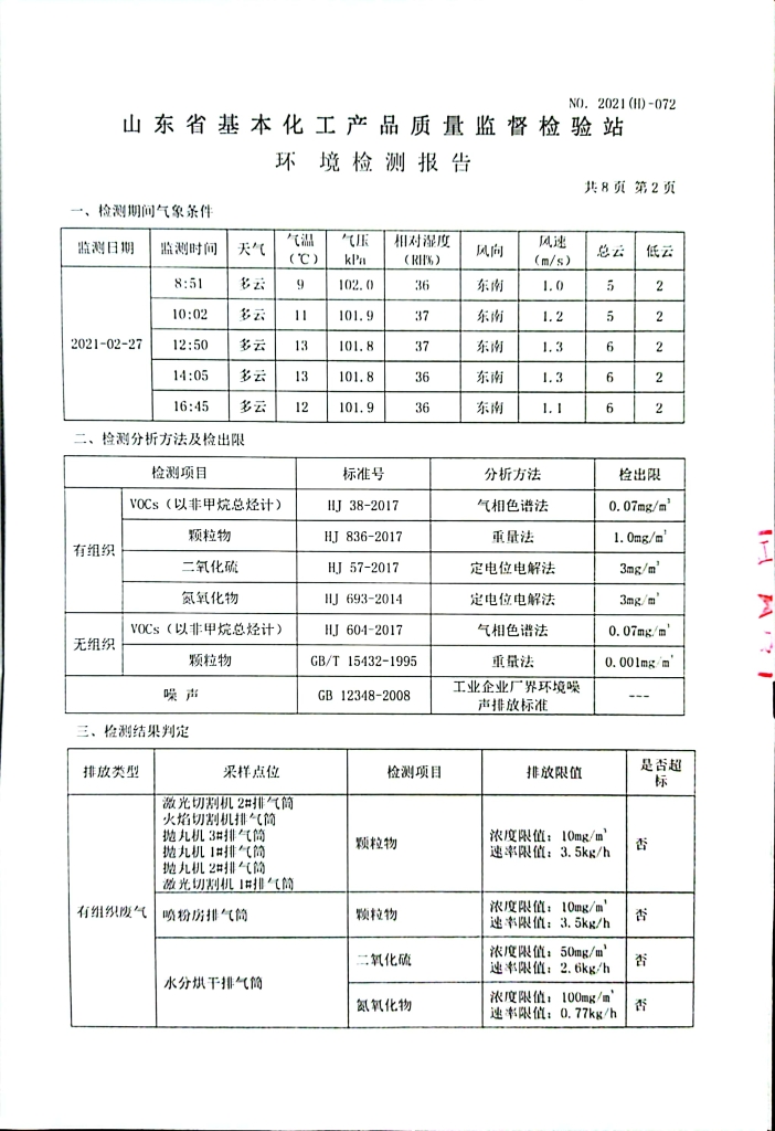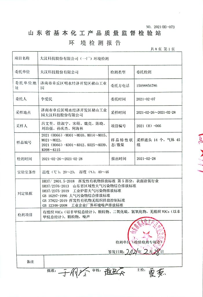 2021年第一季度環(huán)境檢測(cè)報(bào)告