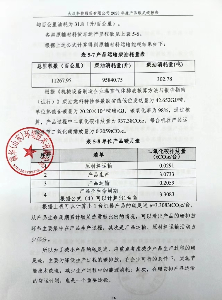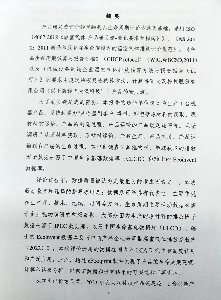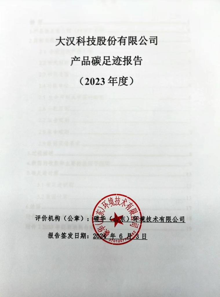 大漢科技股份有限公司產(chǎn)品碳足跡報告(2023年度)