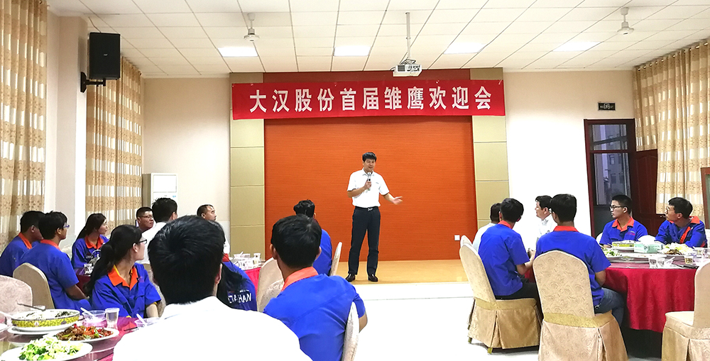 最后康總強(qiáng)調(diào),公司未來的發(fā)展壯大離不開新鮮血液的加入,離不開年輕人的激情與創(chuàng)新,職業(yè)發(fā)展的通道已為新員工們打開,大漢的平臺(tái)是沒有天花板的舞臺(tái),梁啟超在《少年中國說》中說:少年強(qiáng)則中國強(qiáng)。現(xiàn)在我們相信“雛鷹強(qiáng)則大漢強(qiáng)”。